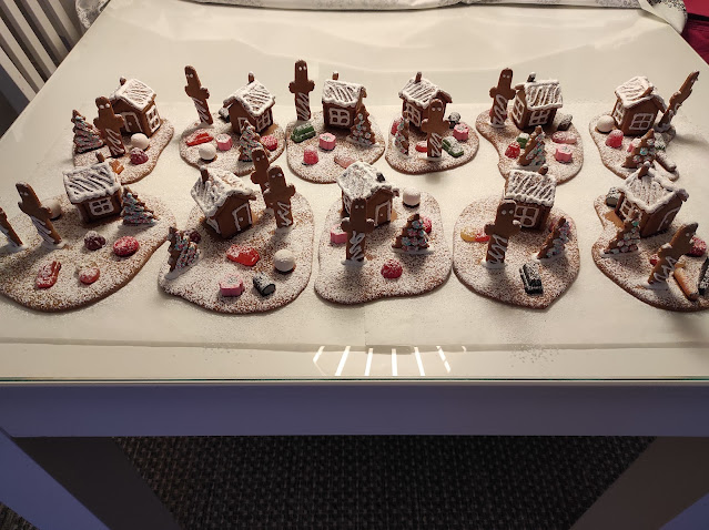 Tänä vuonna tuli jälleen tehtyä taloja lahjaksi, nyt vain tuollaisia minitönöjä. Tuli myös käytyä katsomassa Toivolan vanhalla pihalla Lumiukko-animaatio.
